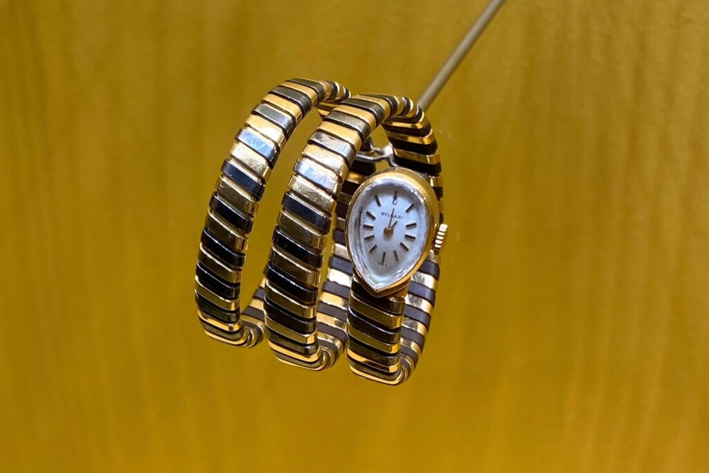 ブルガリの色彩と物語を体現する傑作「コンバーチブル・ソートワール=ブレスレット」(1969年頃)。