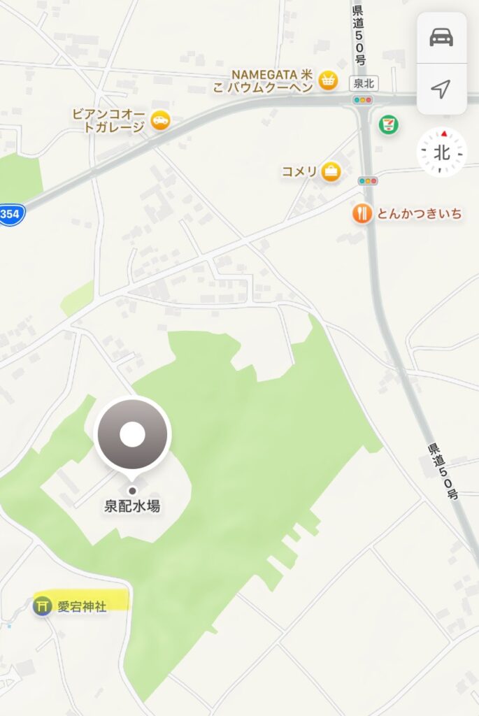 参拝された方のブログをみると「行方市 泉配水場」を場所の目印にするとわかりやすそうだったので、Googleマップで検索して向かいました。