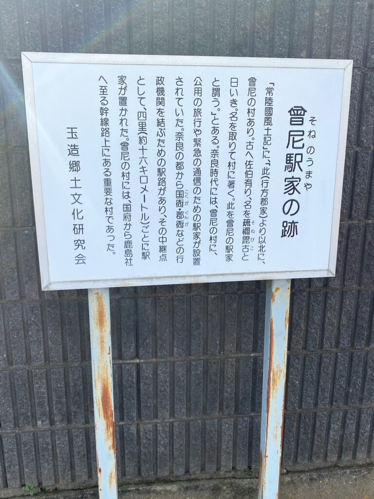 Googleマップ↓の下部にある黄色丸の場所に、「曾尼の駅家跡」の案内板があります。