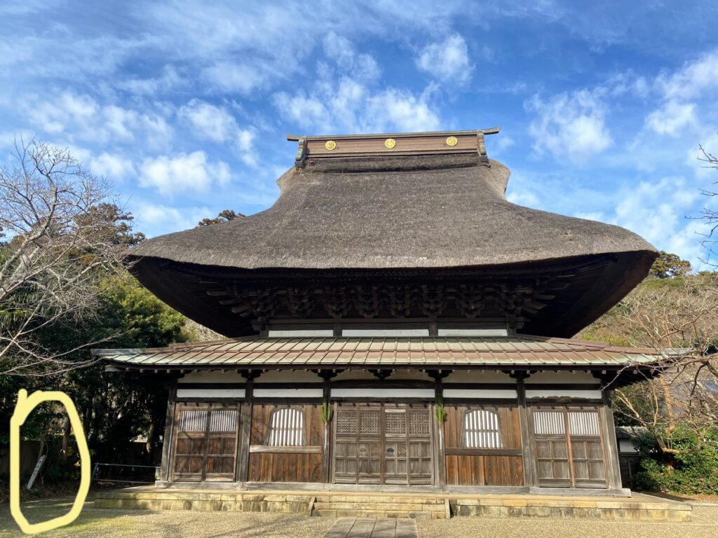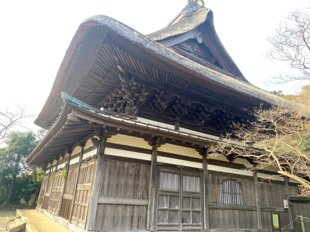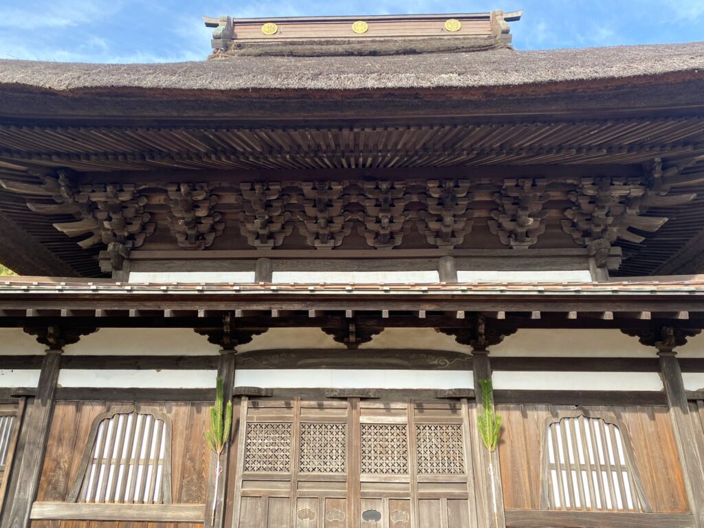 厚い茅葺屋根の思わず見惚れてしまうようなお堂。迫力あります!