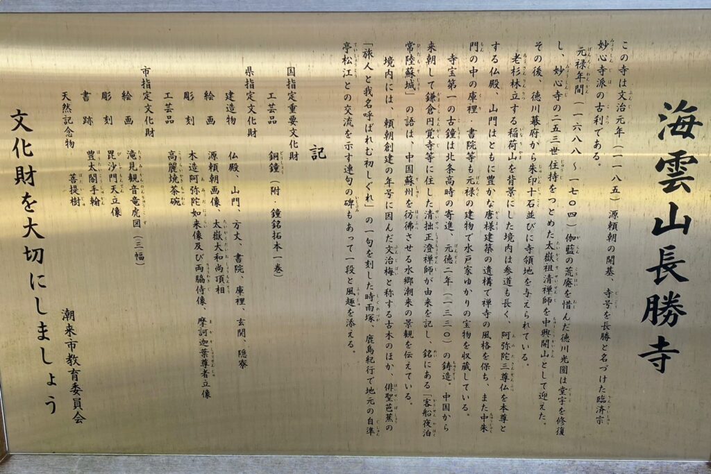 潮来にある臨済宗のお寺「長勝寺」の境内に「潮来(板来)の駅家跡」と書かれた木棒が立っています。