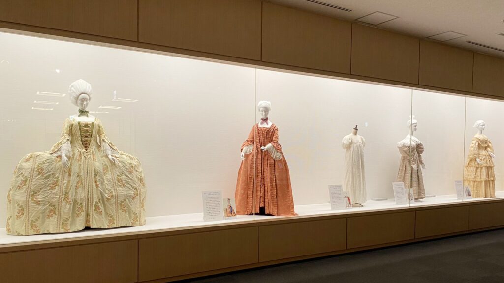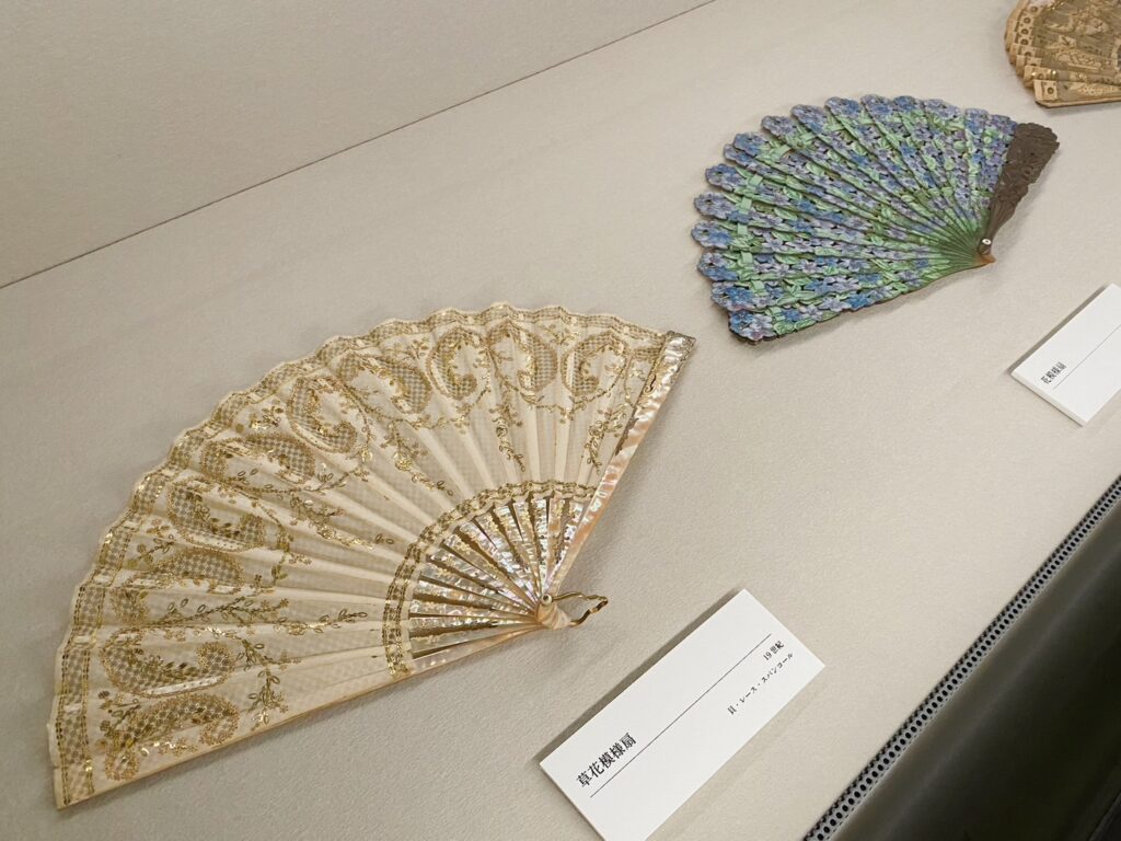 他にもヨーロッパの復元ドレスや、博物館に寄贈されたバッグや扇が展示されていました。