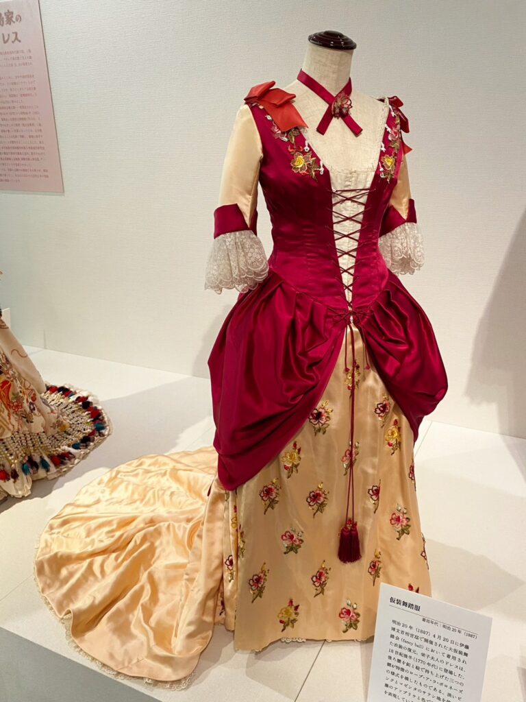 明治20年の伊藤博文首相官邸で開催された大仮装舞踏会で着用されたドレスの復元ドレスも可愛かったです。