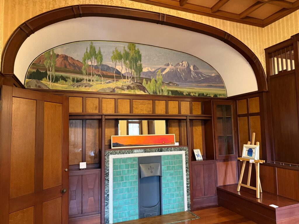 昔の写真にあった上部に風景画が描かれた暖炉。