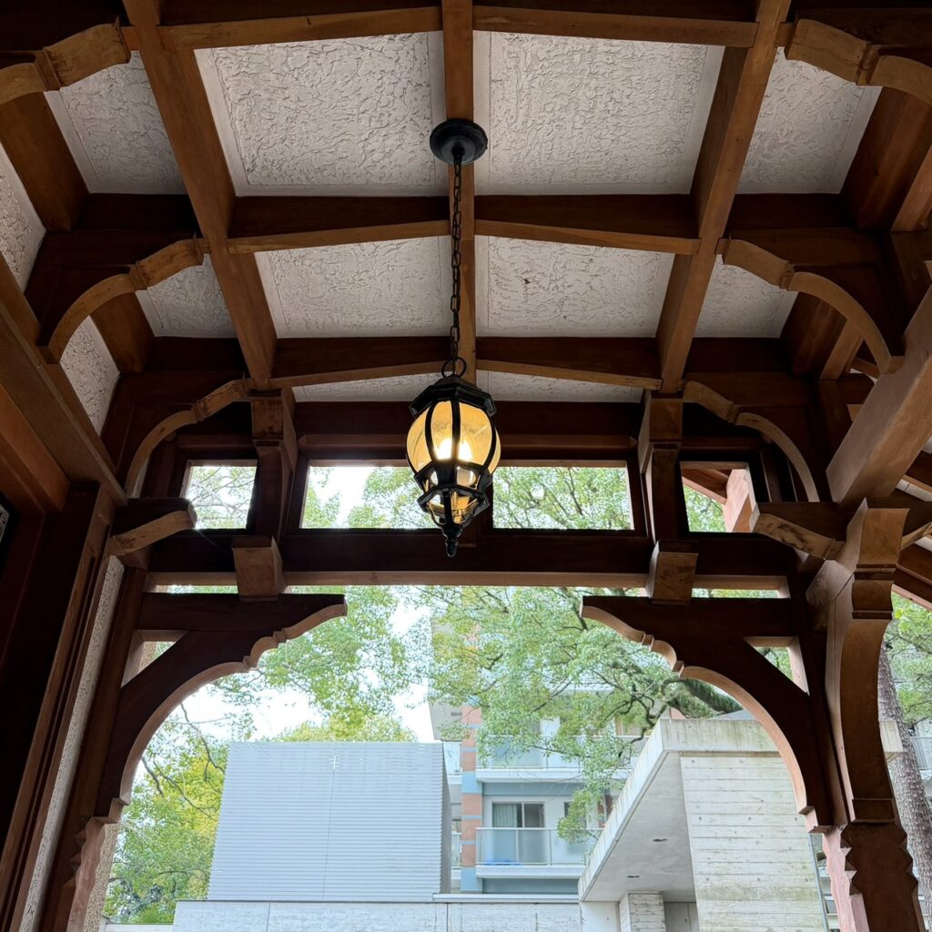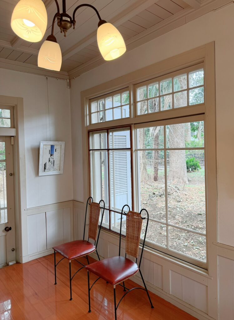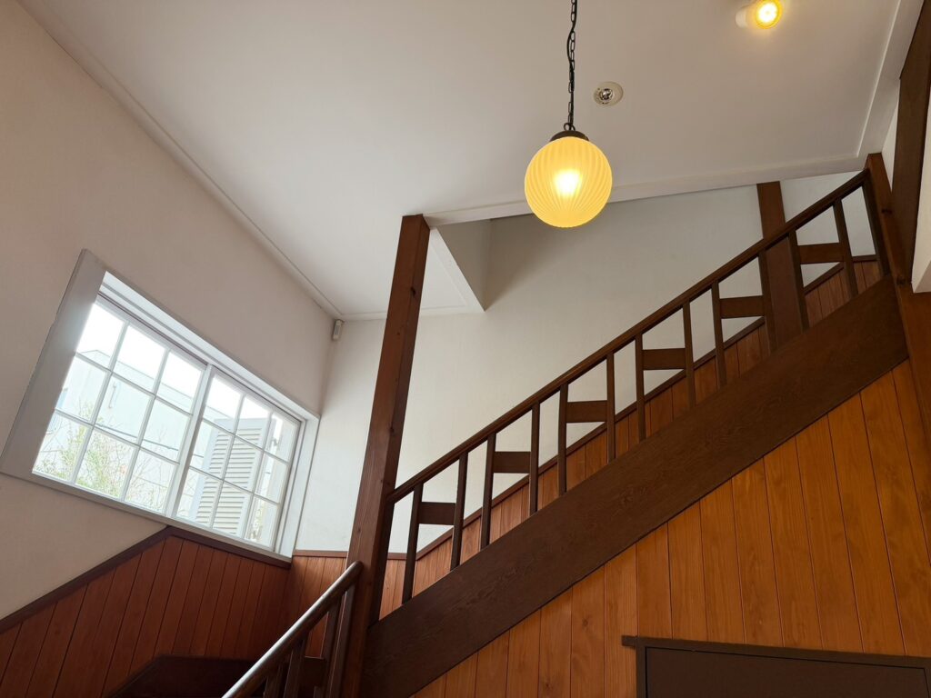 木の手すりの独特なデザインはそのまま、窓などは洋風になっています。