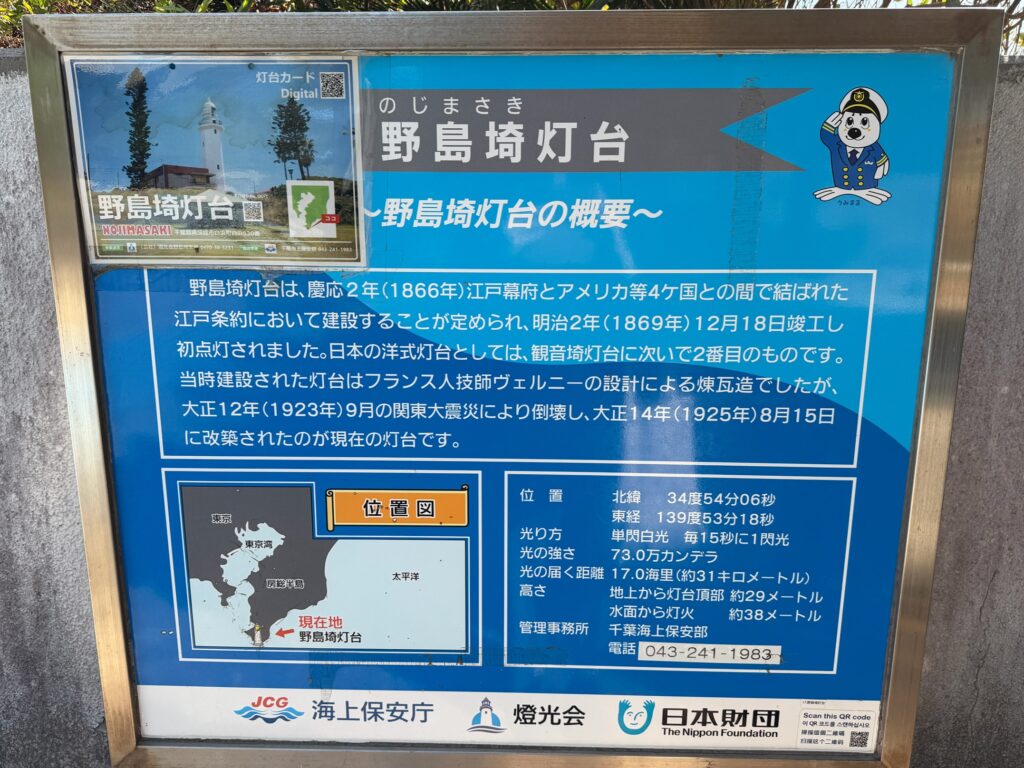 野島崎灯台は、1866年(慶応2年)に江戸幕府がアメリカ・イギリス・フランス・オランダと結んだ 「江戸条約」で建設が約束された8つの灯台のうちの1つで、