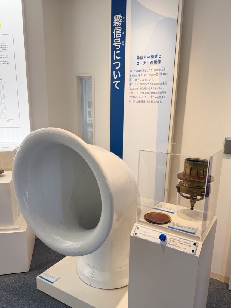 今は廃止されていますが、霧信号コーナーでは野島崎霧信号所で実際に使われていた霧信号の音(録音したもの)を聞くことができます。