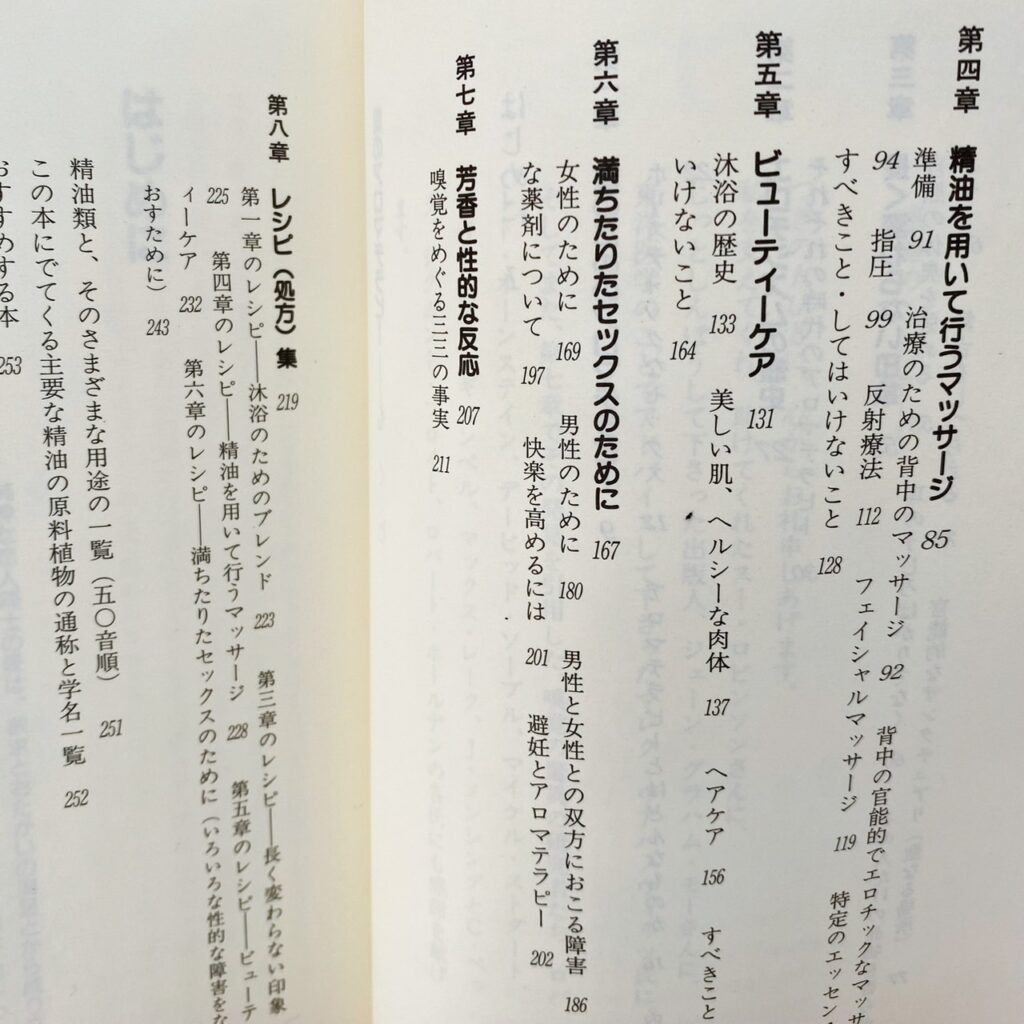 本には他にも、官能的な気持ちが高まるような香りを用いた空間づくりや、性的な魅力を高めることにもつながる香りを使った美容方法などが記載されており、
